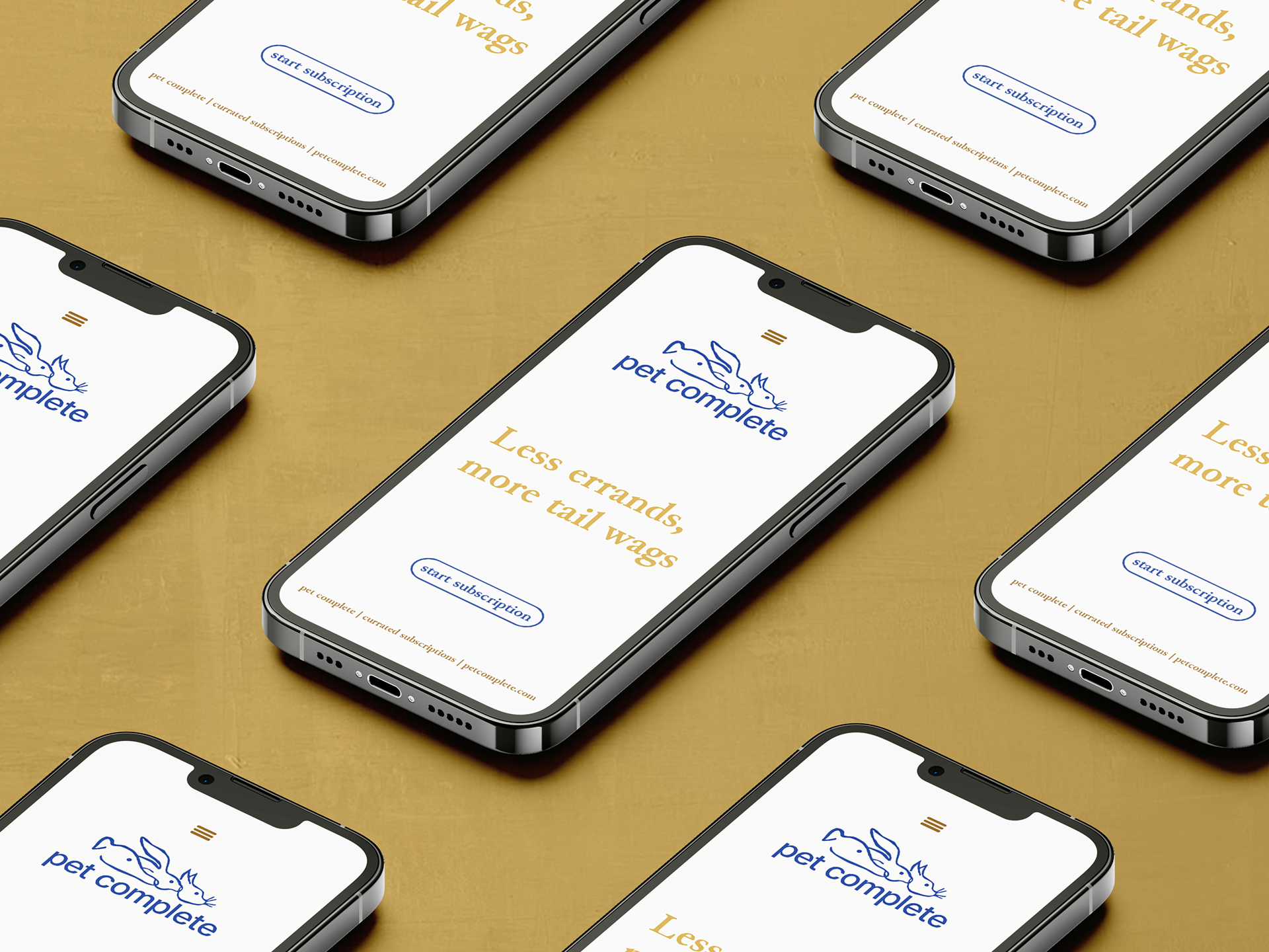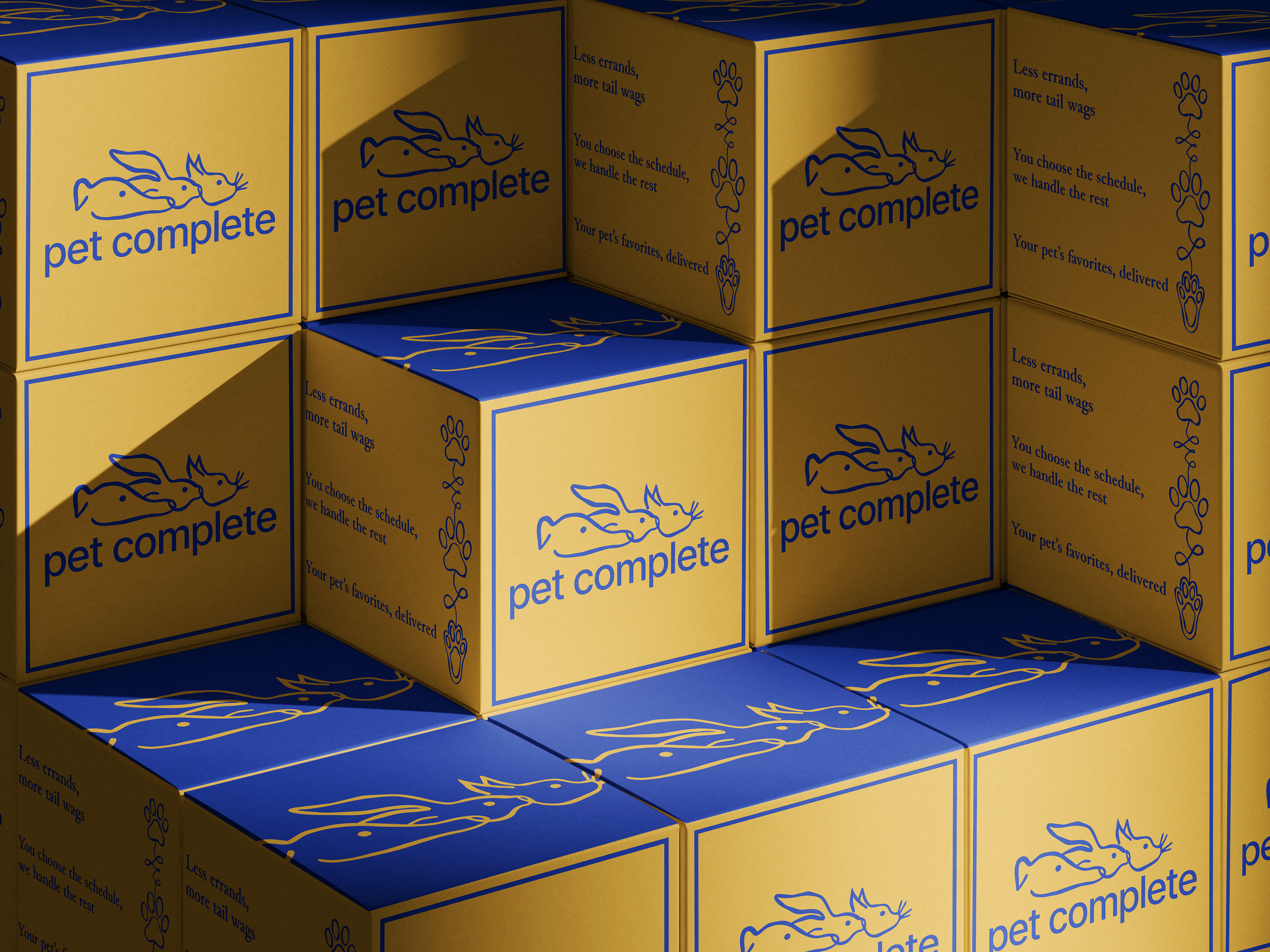 As part of developing the brand for Pet Complete, a start-up pet subscription service, I created a cohesive identity system that could scale across multiple touch points. The concept focused on building a sense of reliability and care, balancing playful elements with a clean, structured design language. I was responsible for designing the logo, color palette, and typography system for this project.